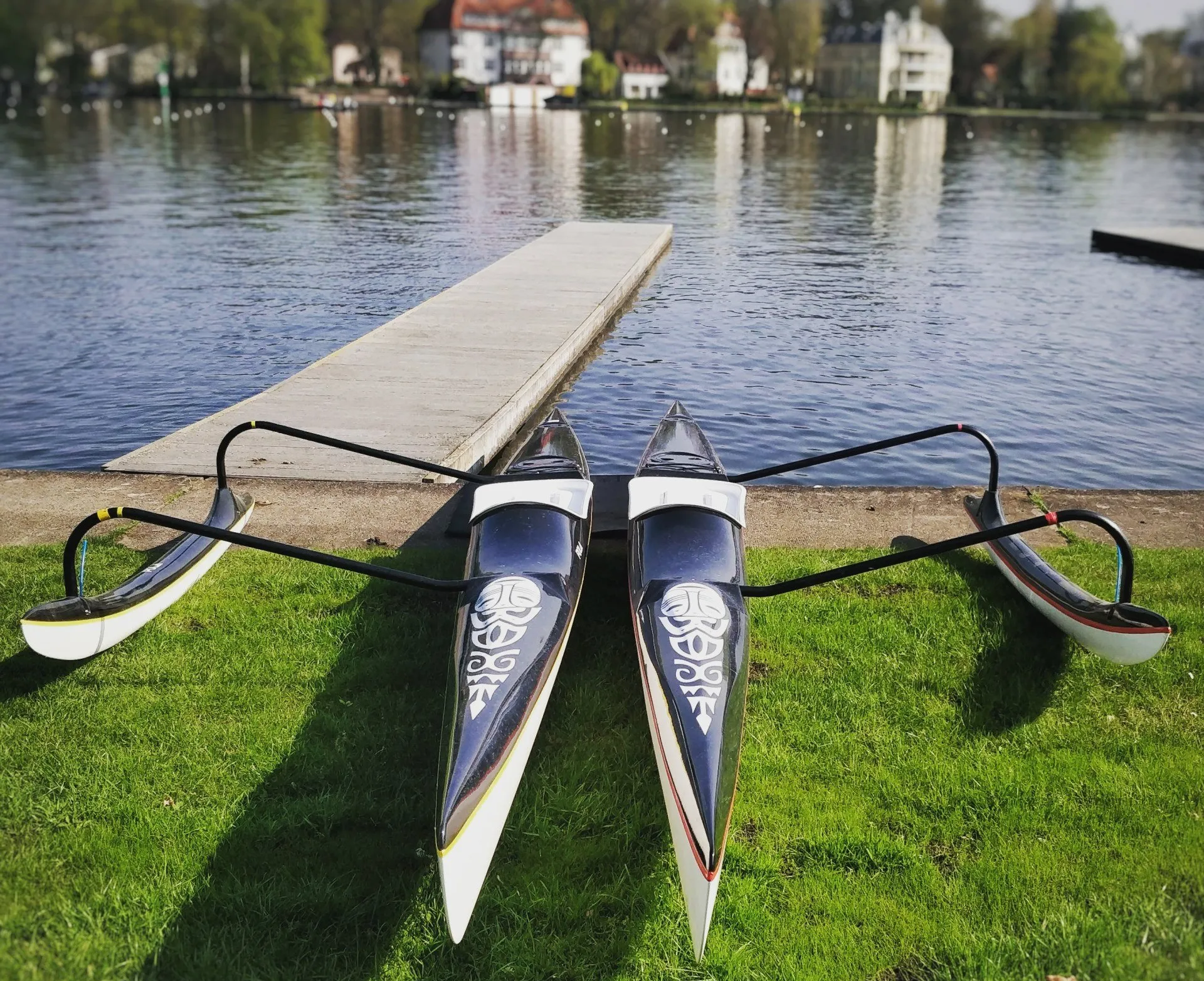 Wenn wir doch mal solo oder zu zweit unterwegs sind, nutzen wir die Outrigger-Kanus des Vereins! Es ist immer für Abwechslung gesorgt.